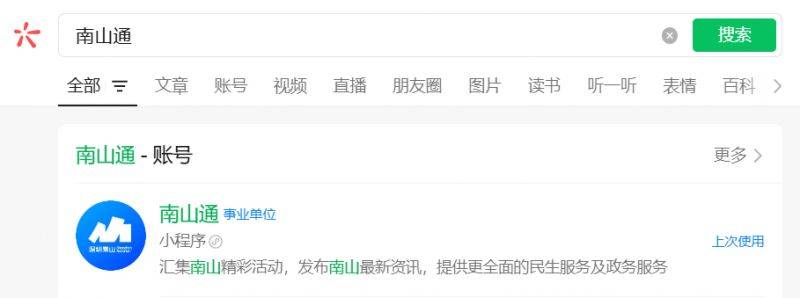 1、进入南山通微信小程序