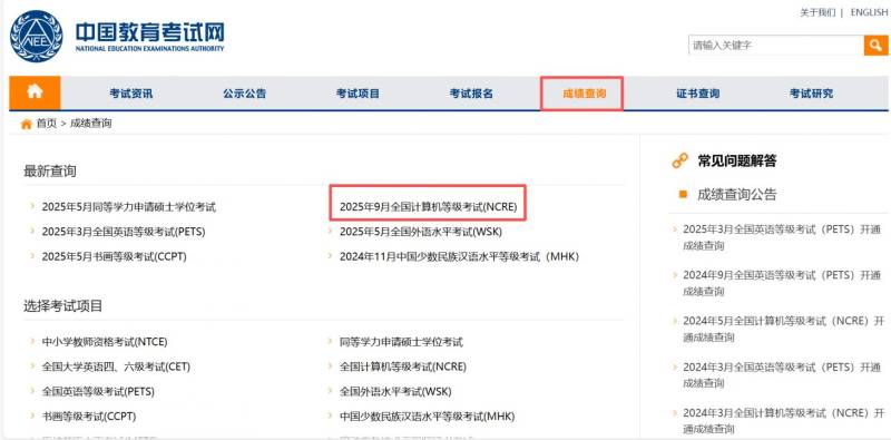 2025年9月(第76次)全国计算机等级考试成绩已发布,考生可登录“中国教育考试网”(http://www.neea.edu.cn/)查询本次考试成绩以及电子证书信息,符合获证条件的考生可下载电子证书。