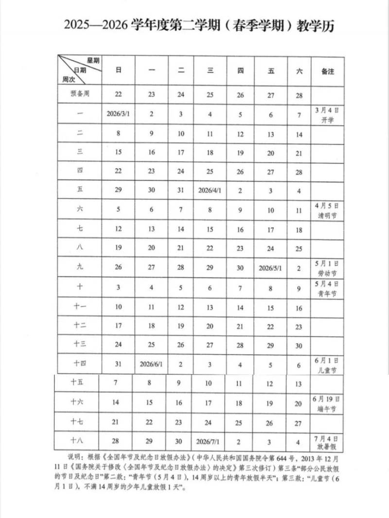 1.开学时间。全市中小学校、幼儿园于2026年3月4日(星期三)开学。