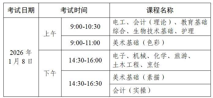 2026年第一次广东省中等职业技术教育专业技能课程考试时间+考点安排