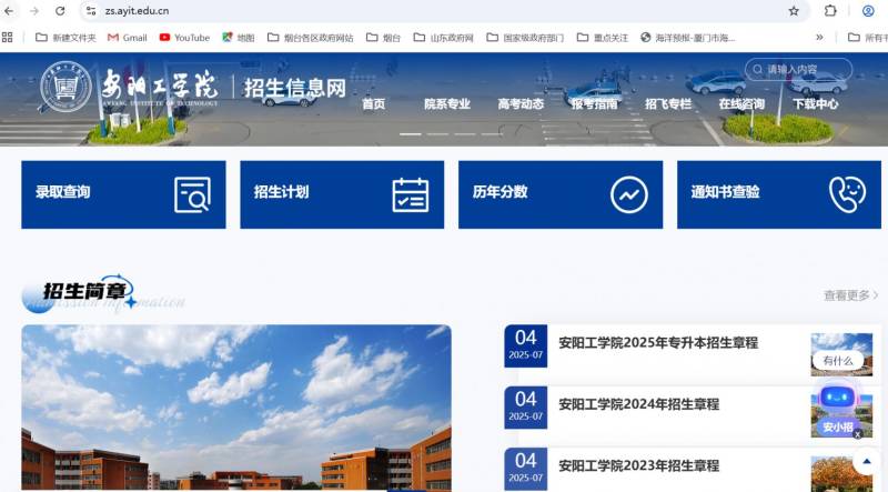 安阳工学院招生信息网(https://zs.ayit.edu.cn/)。