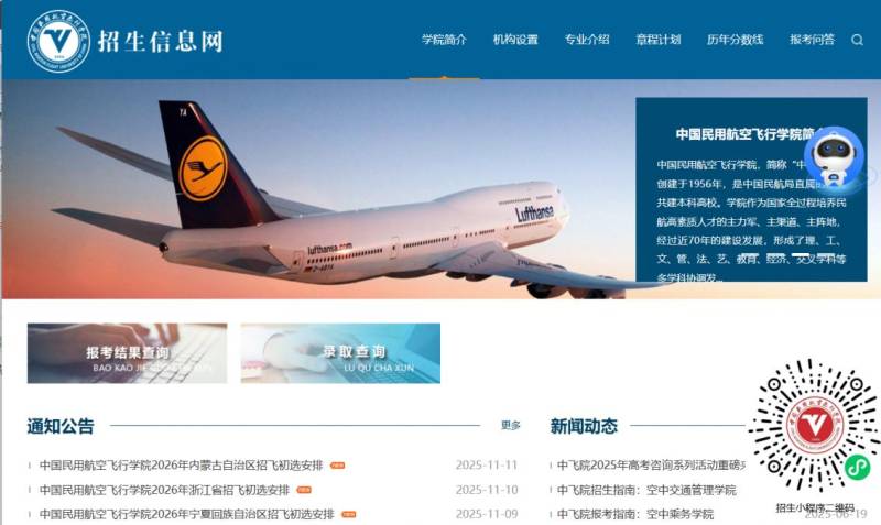 中国民用航空飞行学院招生信息网(https://zsc.cafuc.edu.cn/)。