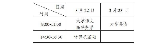 2025年我市普通高校“专升本”统一考试科目和时间安排如下: