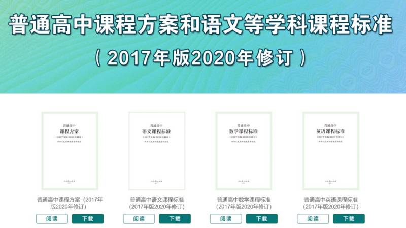 点击阅读→普通高中课程方案及20科课程标准(2017年版2020年修订)