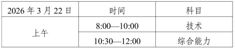 职业技能测试科目为技术和综合能力,采取闭卷笔试形式,全市统一组织,以市高招办组编的考试说明作为命题依据。技术、综合能力2个科目的满分值均为200分,考试时长分别为120分钟和90分钟。