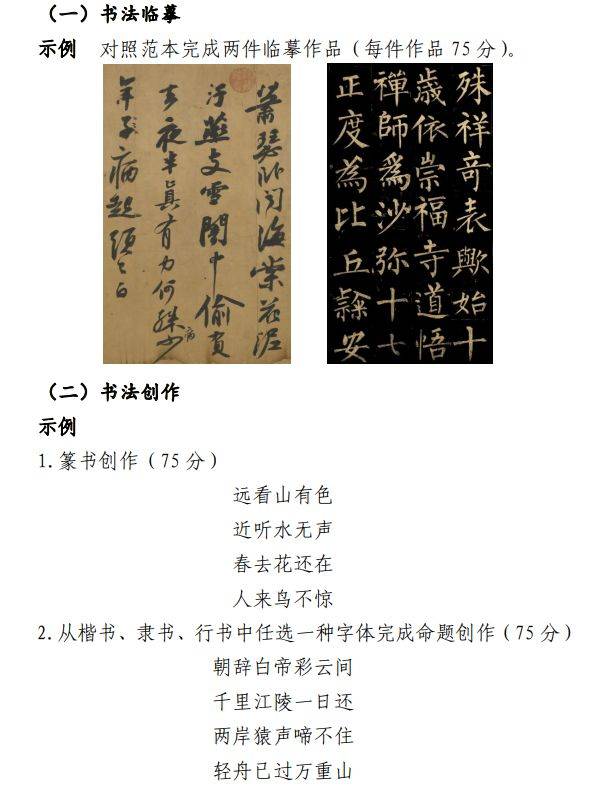 注:从 2027 年起,考试内容 2 调整为“以指定书体(楷书、隶书、行书中的一种)完成命题创作”。