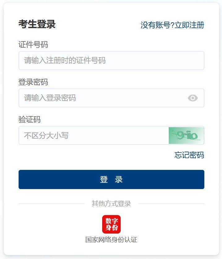 第二步:进入后请输入注册时的证件号码和登录密码,根据图片输入验证码,即可登录