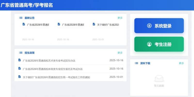考生在规定时间内进入“广东省普通高考/学考报名系统”(网址:https://pg.eeagd.edu.cn/ks/)(以下简称“报名系统”),凭姓名、证件号注册考生账号,设置密码,并绑定手机号码。已注册报名参加2026年高考的考生或2022年7月份(含)后参加过高中学考的考生无须再次注册,其他所有考生(含2022年7月份前参加过高中学考的考生)均须重新注册。