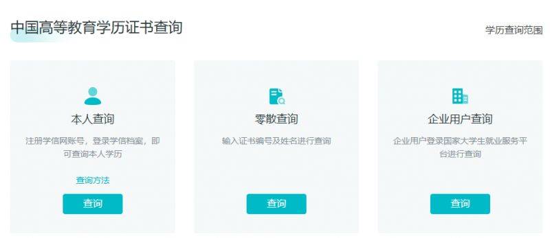 第一步,进入学历查询 (https://www.chsi.com.cn/xlcx/index.jsp)入口,有三种中国高等教育学历证书查询的方法,通常我们都是选择第一种,本人查询,需要注册学信网账号,登录学信档案,即可查询本人学历