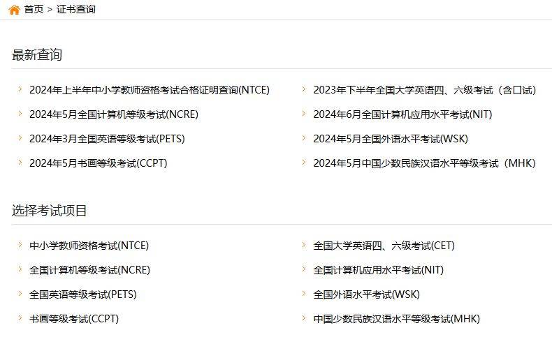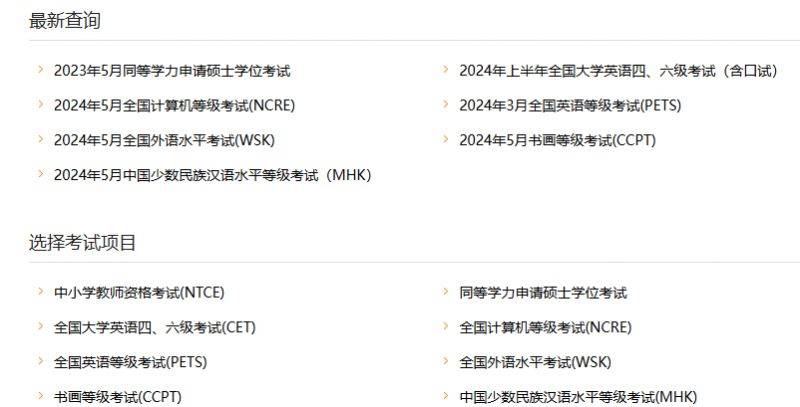 上述提到的考试项目,都有对应的查询入口,点击进入→成绩查询入口