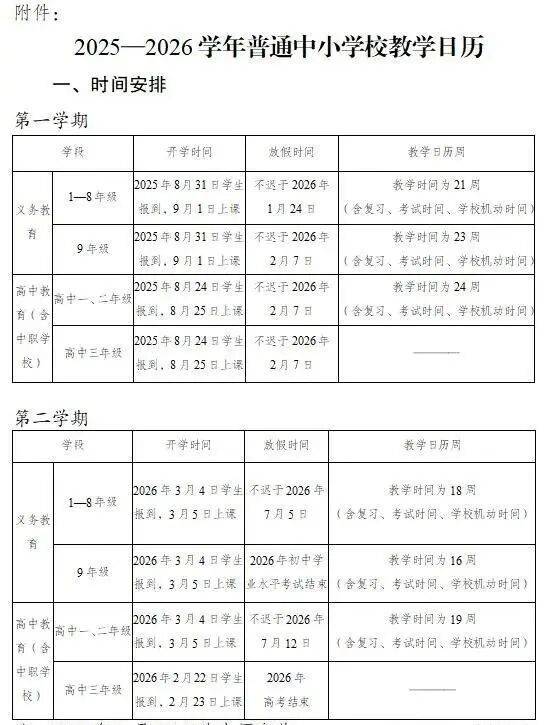 寒假时间不迟于2026年1月24日,开学时间为2026年3月4日学生报到,3月5日上课。